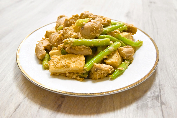 收到很多粉絲的私訊說:「松阪雞肉要怎麼料理?」松阪雞肉的肉質Q彈,拌炒、香煎、燒烤都非常適合,今天野飼崎雞小編就要來為你示範一道松阪雞肉料理食譜,只要10分鐘好菜就上桌,跟著小編一起來做這道美味的雞肉料理-<金沙炒松阪雞肉豆腐四季豆>吧!